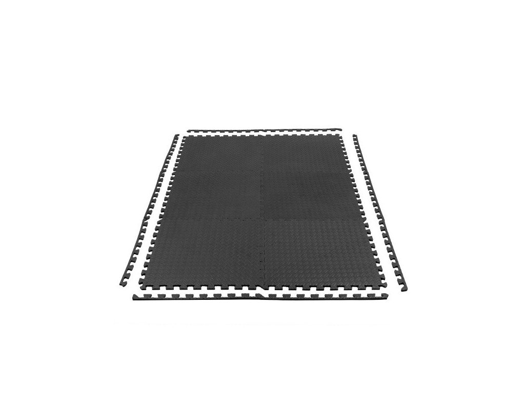 Černá modulární pěnová fitness podložka chrání podlahu před poškozením a také tlumí zvuky a vibrace, které vznikají například během odhozů činek a pokládání nářadí. Výchozí balení je určeno pod jeden stroj, nebo lavičku. Díky puzzle zámkům po obvodu každého dílu Vám nic nebrání ve vyskládání například celé podlahy. Balení obsahuje 6 čtvercových a 10 zakončovacích dílů pro hladký obvod.