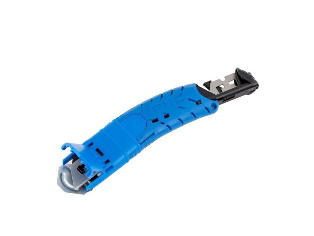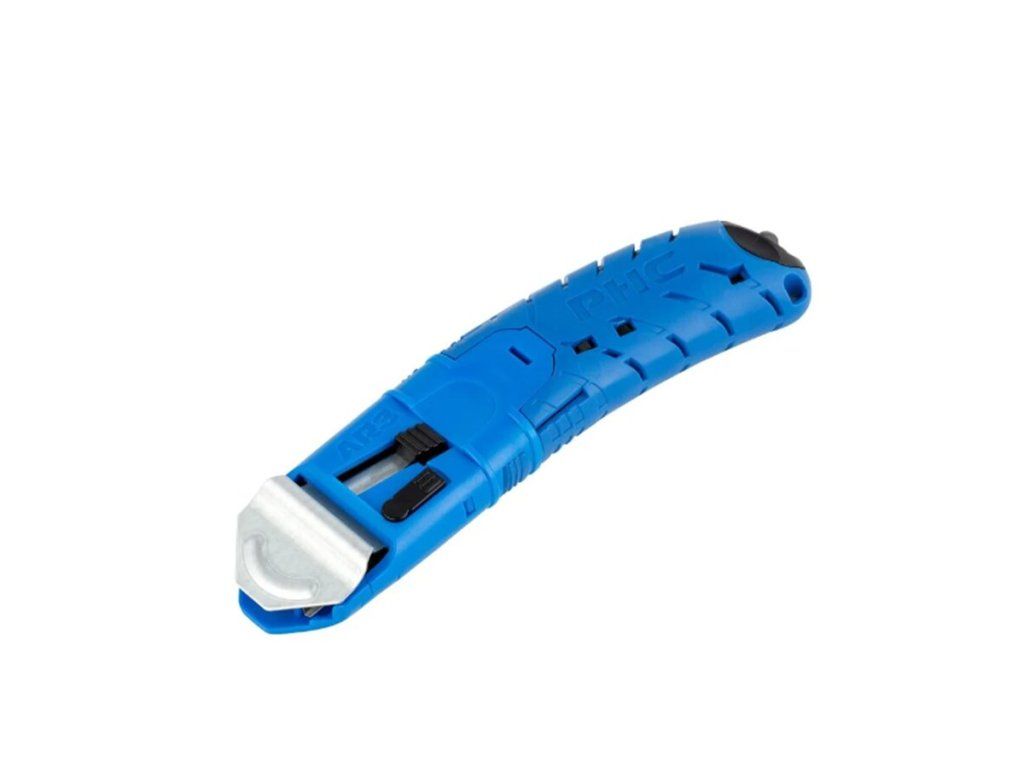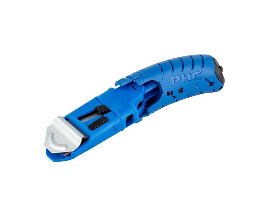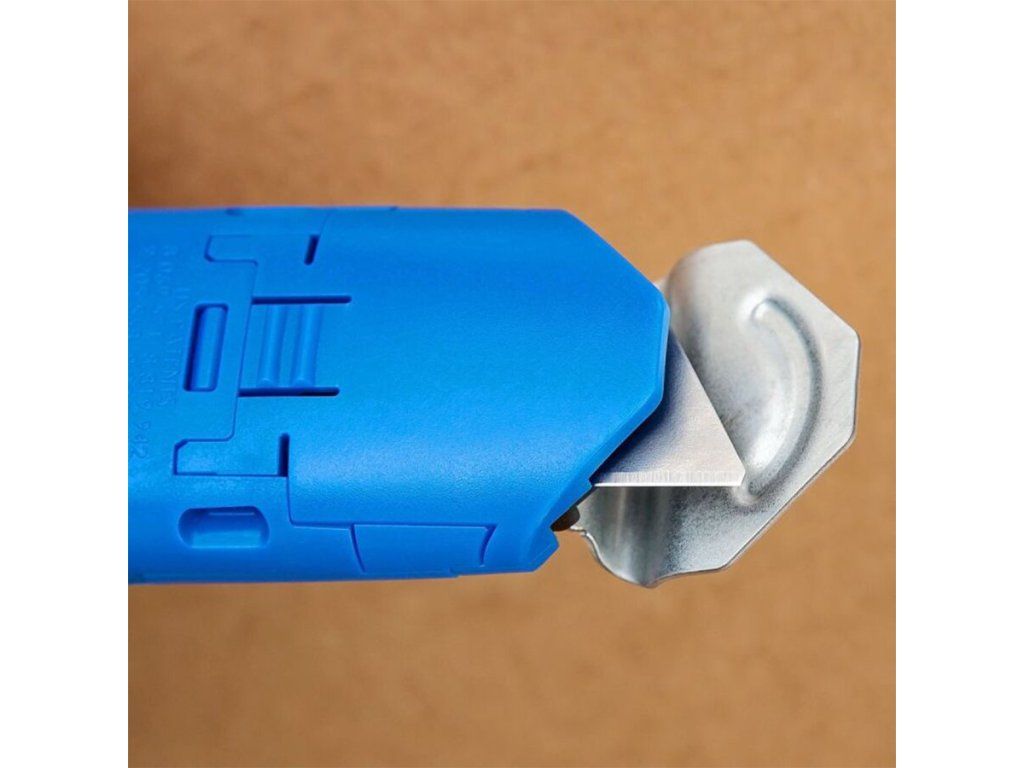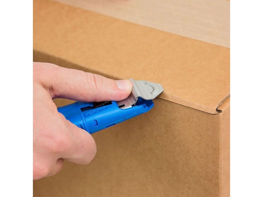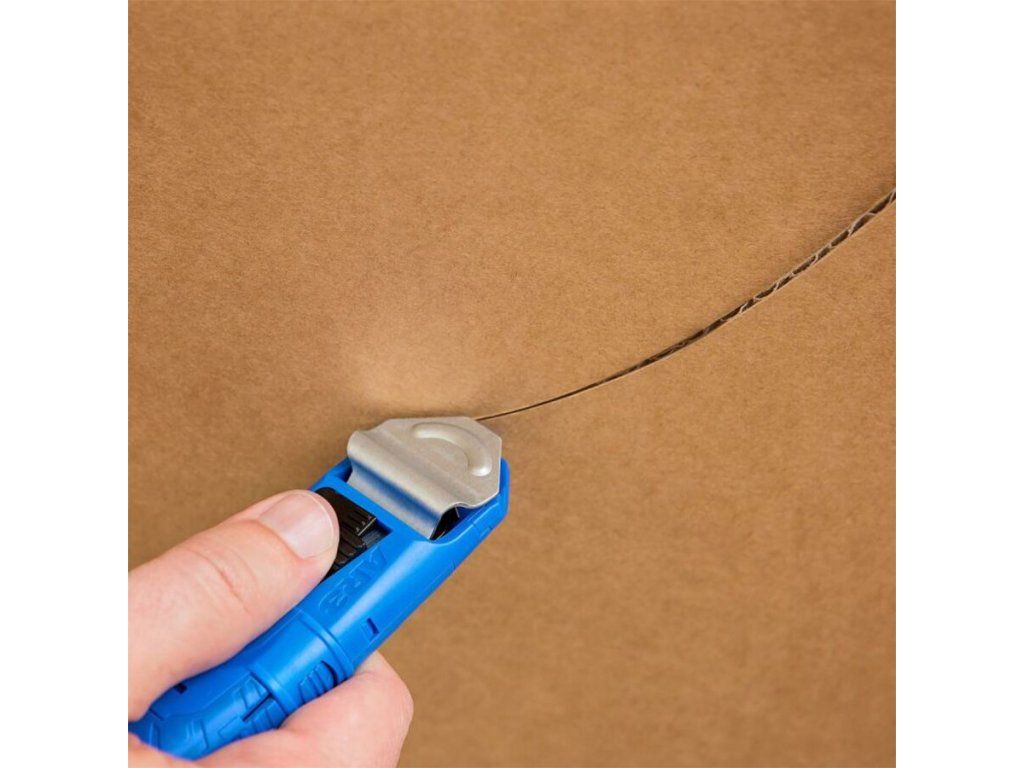 Samonavíjecí čepel citlivá na tlak lze v případě potřeby také vysunout bez ochranného krytu a má dvě aretační polohy hloubky čepele, což poskytuje možnost řezu v malé hloubce, která dále chrání obsah krabice před poškozením. Díky ergonomické oboustranné otočné rukojeti a nejjednodušší výměně čepele na trhu tento univerzální řezací nástroj snižuje nákladná poranění žiletkou a dělá řezání krabic bezpečným, snadným a pohodlným.