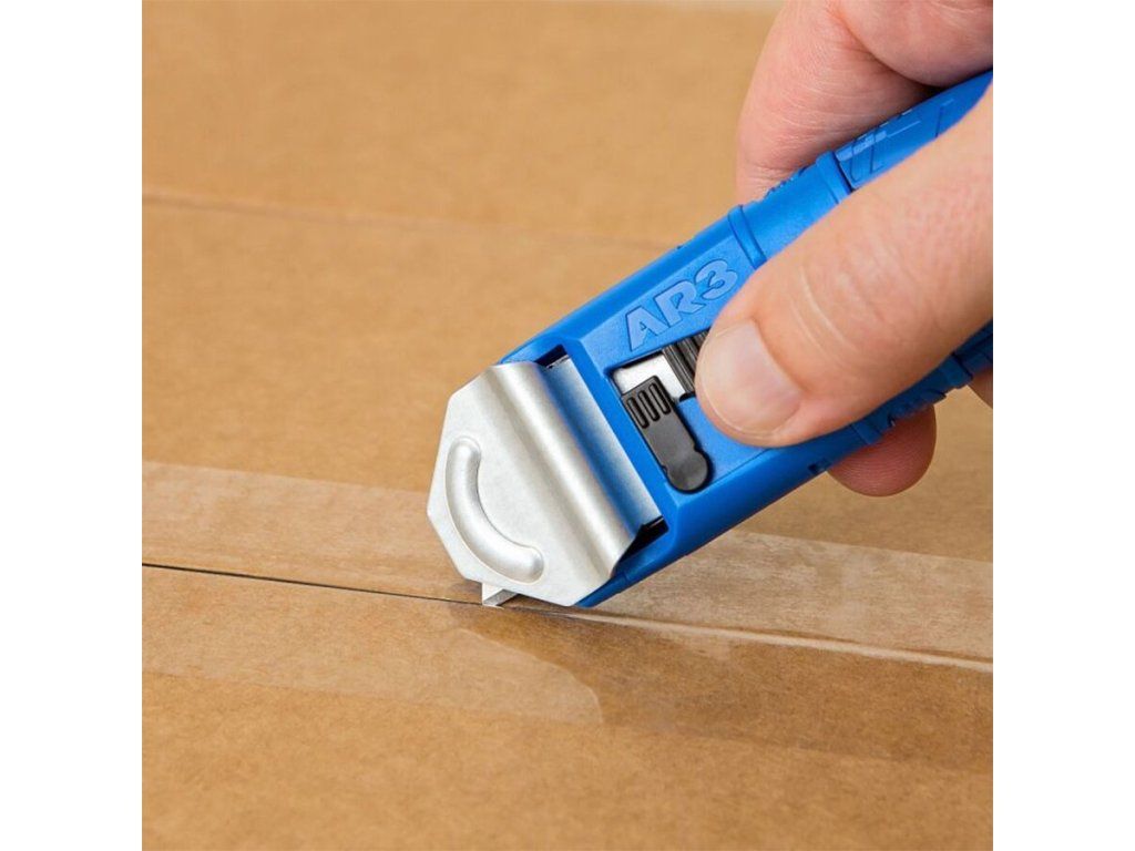 Bezpečnostní nůž AR3 samo-zatahováním poskytuje dvojitou úroveň bezpečnostních výhod s technologií chráněné čepele a funkcí automatického zatahování čepele. Aby se předešlo bolestivým a nákladným zraněním, je AR3 vybaven inovativním kovovým krytem, který se rozšiřuje s čepelí, zakrývá čepel při řezání horní části krabice a chrání uživatele. Ochranný kryt také slouží jako vodítko pro provedení dokonalého řezu pokaždé a zabránění poškození obsahu v krabici.
