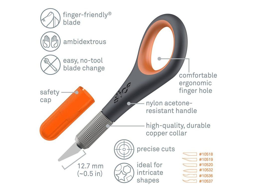 - bezpečnostní čepele Slice jsou chemicky netečné, nemagnetické, nevodivé, nejiskřivé, nerezavějící