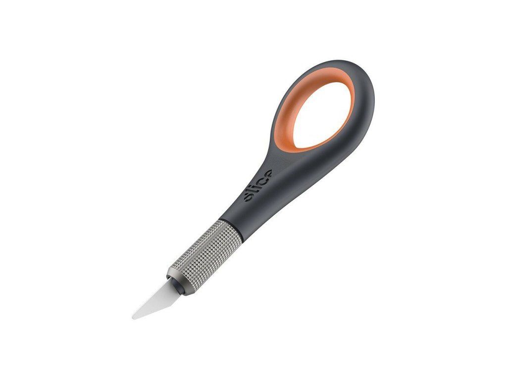 Jedinečná rukojeť přesného nože Slice 10580 nabízí inovativní prstenovou rukojeť, která poskytuje uživateli přesné ovládání detailních řezů a složitých tvarů. Jeho protiskluzový vnitřní prsten a křížové šrafování zajišťují, že nástroj reaguje na každý váš pohyb. Bezpečnostní kryt chrání před nehodami mezi použitími.