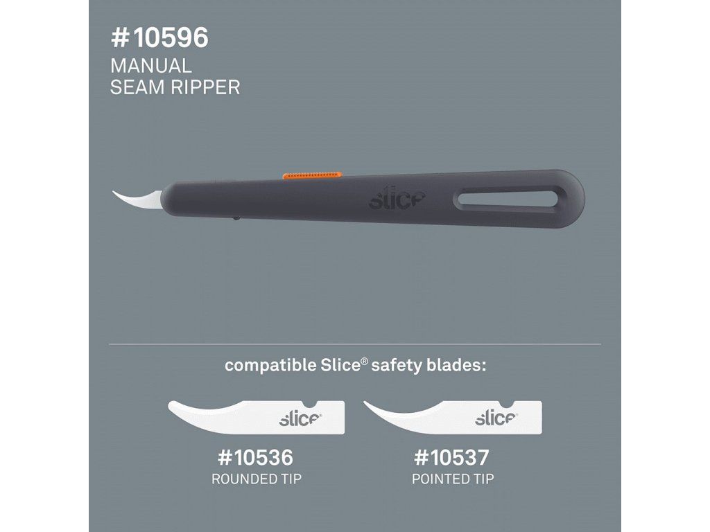 Rozparovací nůž Slice 10596 nabízí výběr ze tří přednastavených poloh čepele: zcela zasunutý, částečně prodloužený a plně vysunutý. Lehká rukojeť je vyrobena z odolného vyztuženého nylonu a je navržena tak, aby umožňovala snadné použití. Díky této funkci nůž umožňuje uživateli vybrat správnou hloubku ostří pro danou úlohu.