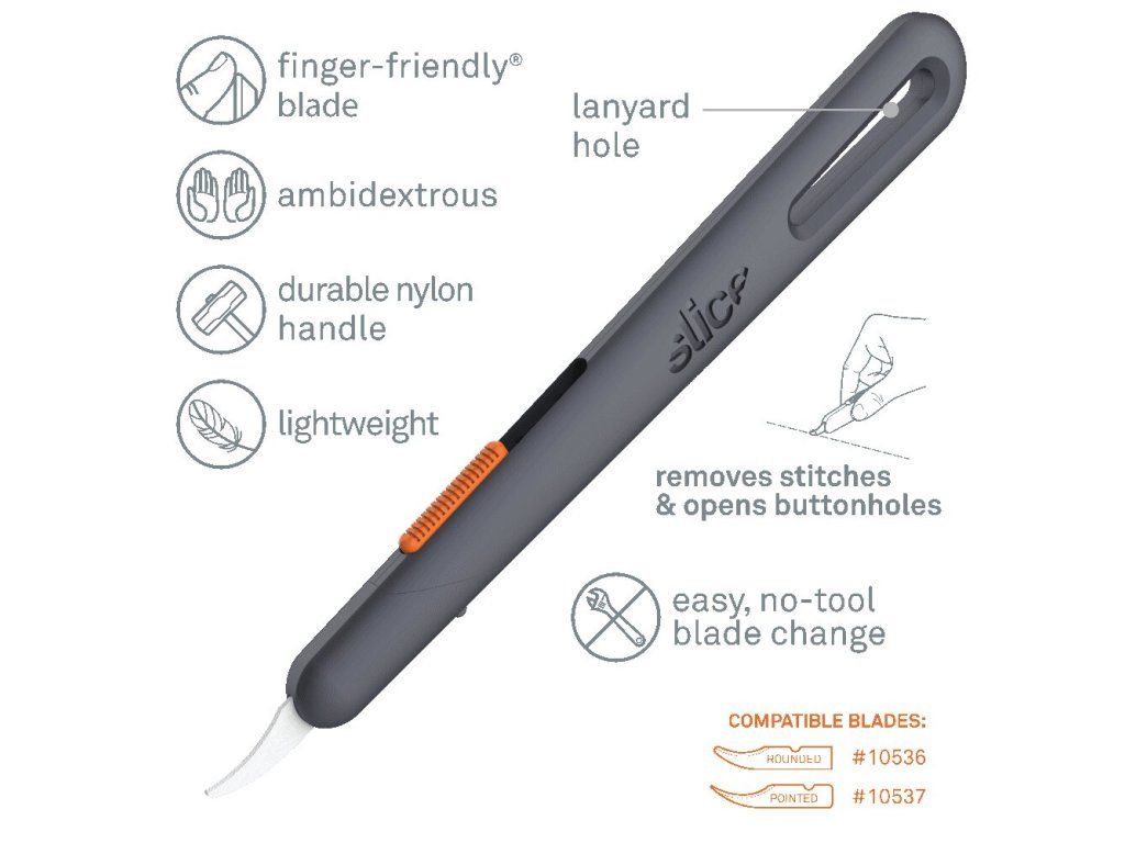- bezpečnostní čepele Slice jsou chemicky netečné, nemagnetické, nevodivé, nejiskřivé, nerezavějící