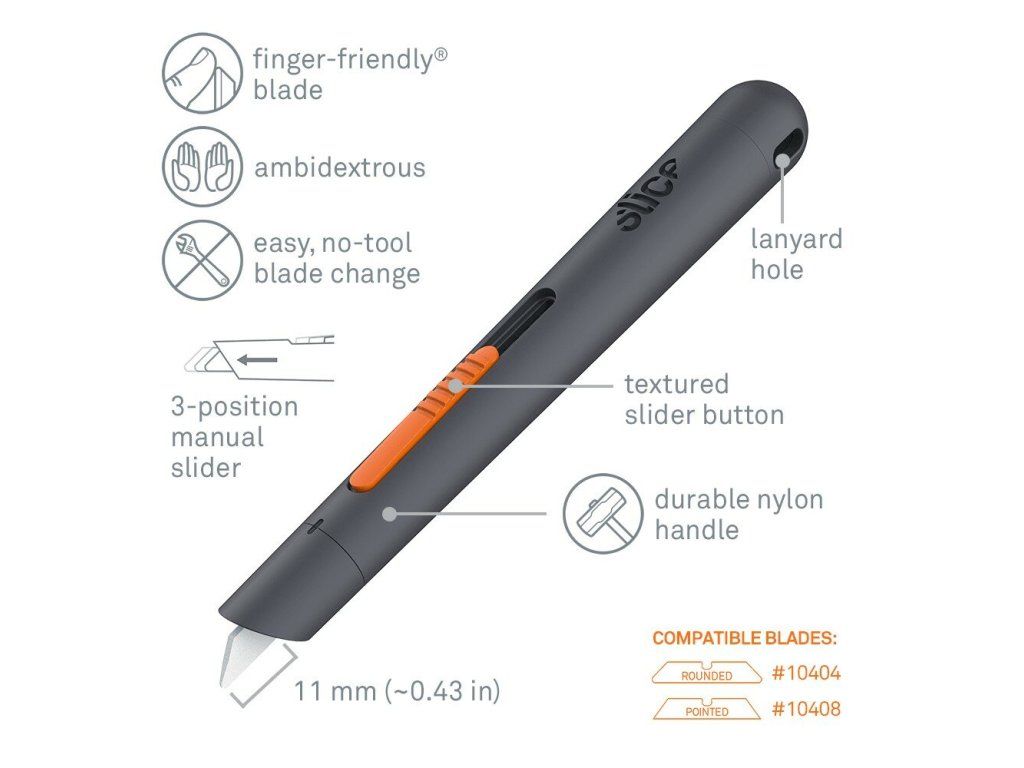 - bezpečnostní čepele Slice jsou chemicky netečné, nemagnetické, nevodivé, nejiskřivé, nerezavějící