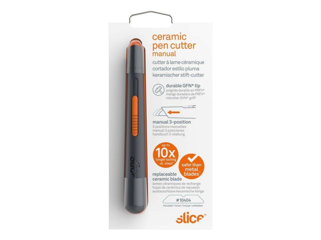 Polohovatelný nůž na krabice Slice 10513 je univerzální nástroj, jenž najde uplatnění jak v domácnostech, v kancelářích, tak v průmyslových továrnách a skladech. Jeho rukojeť je opatřena pogumovaným posuvníkem se dvěma hloubkami řezu, takže si můžete vybrat správnou hloubku řezu pro každou úlohu. Po ruce ho můžete mít díky integrovanému otvoru na šňůrku, kolečku na klíče nebo sponě na opasek. Stejně jako u všech nástrojů Slice lze i tento nůž používat oboustranně: stačí otočit hranu čepele v rukojeti pro leváky.