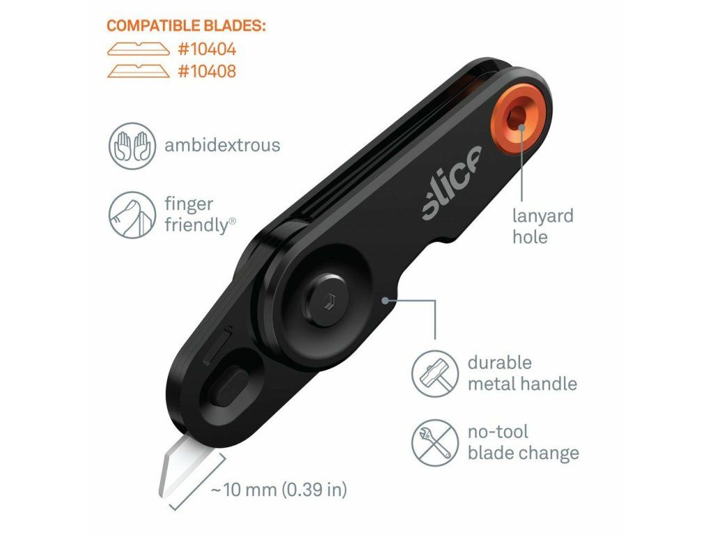 - bezpečnostní čepele Slice jsou chemicky netečné, nemagnetické, nevodivé, nejiskřivé, nerezavějící