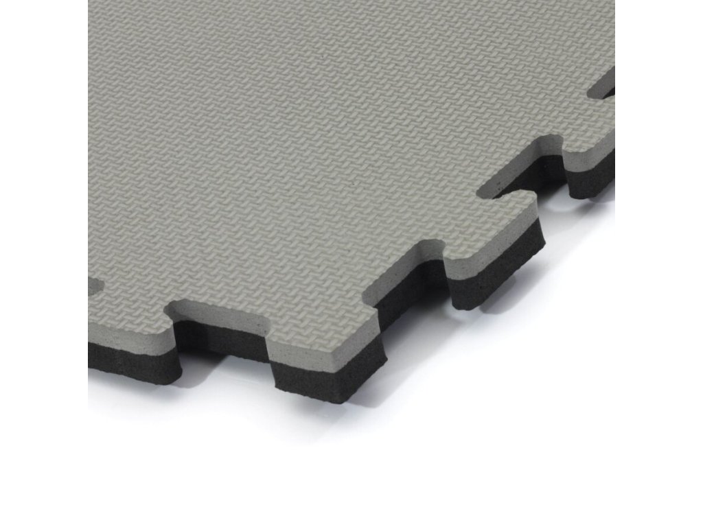 Černo-šedá modulární pěnová podložka Tatami je oboustranná podložka tvaru puzzle, přičemž jednotlivé díly do sebe přesně zapadají. Výhodou Tatami podložky je protiskluzová pěna a měkký dotek. Lze ji využít pro všechny druhy sportů, kde se cvičí naboso.