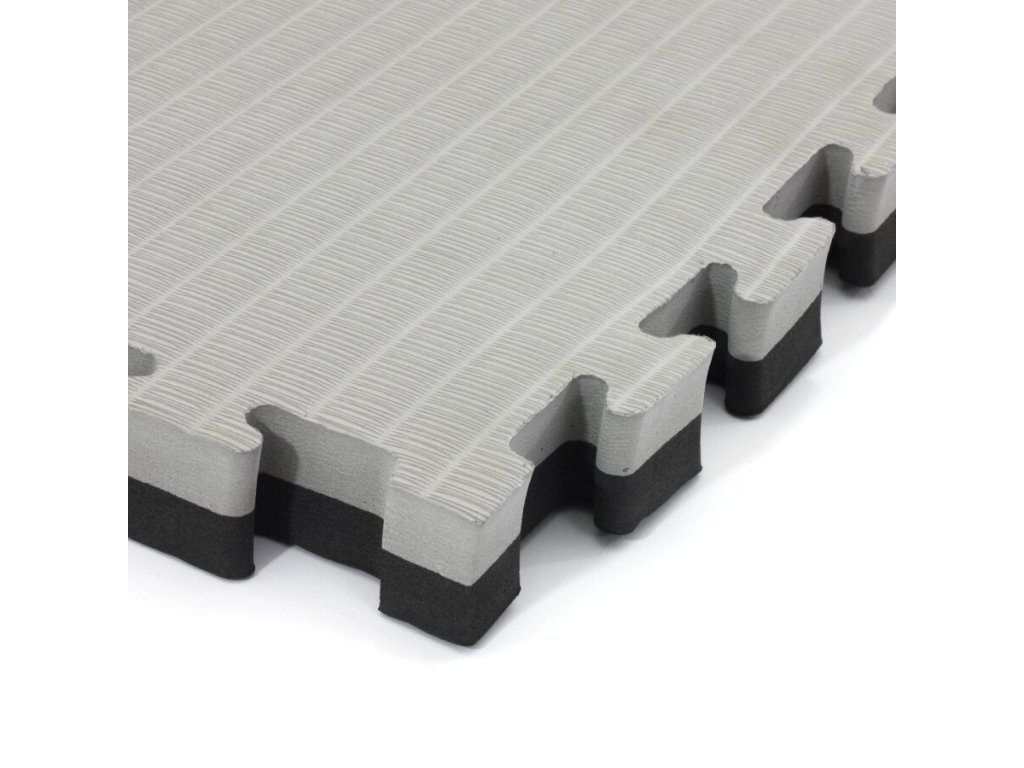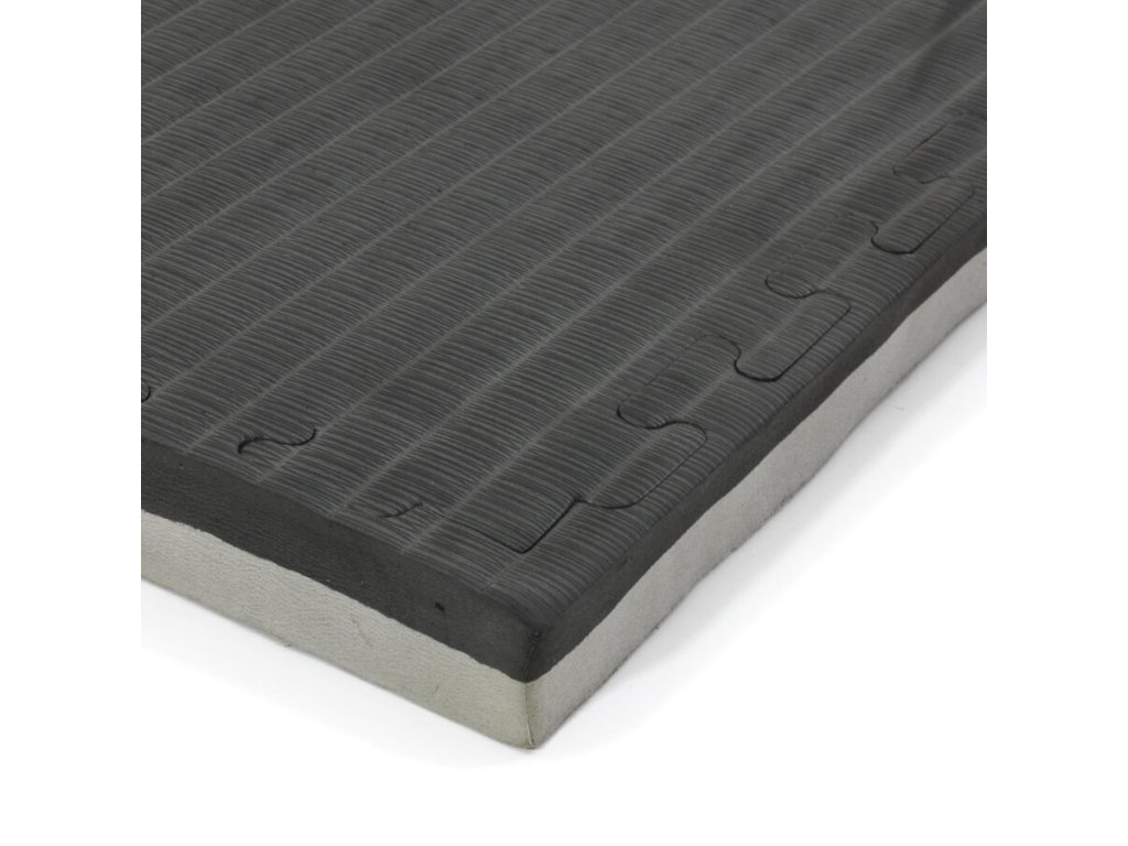 Šedo-černá modulární pěnová podložka Tatami je oboustranná podložka tvaru puzzle, přičemž jednotlivé díly do sebe přesně zapadají. Výhodou Tatami podložky je protiskluzová pěna a měkký dotek. Lze ji využít pro všechny druhy sportů, kde se cvičí naboso.