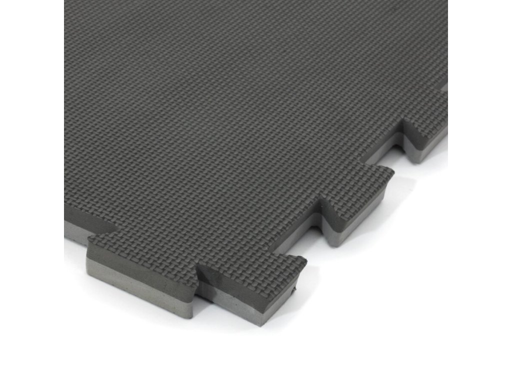 Černo-šedá modulární pěnová podložka Tatami je oboustranná podložka tvaru puzzle, přičemž jednotlivé díly do sebe přesně zapadají. Výhodou Tatami podložky je protiskluzová pěna a měkký dotek. Lze ji využít pro všechny druhy sportů, kde se cvičí naboso.