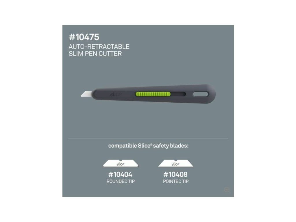 Automatické pružinové zatahování čepele nože na krabice Slice 10475 je pouze jedním z prvků, které dělají z tohoto nože univerzálního pomocníka ve tvaru pera. Odolná rukojeť tohoto nože ze skleněného nylonu má úzký design, který vám umožní práci ve stísněných prostorách. Díky praktickému otvoru na závěsnou šňůrku můžete mít svůj samozatahovací nůž vždy při ruce.