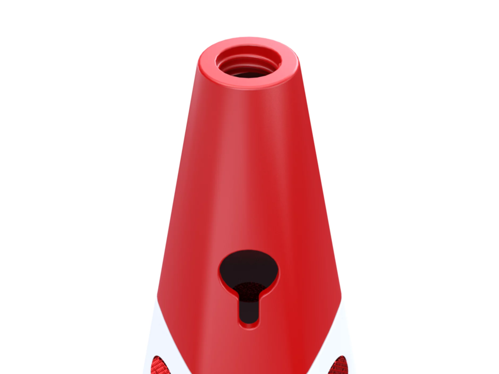 Klíčovou vlastností tohoto modelu jsou integrované reflexní bílé pásy na zářivě červeném podkladu. Tato barevná kombinace společně s retroreflexní technologií zaručuje maximální viditelnost nejen během dne, ale i za úplné tmy, deště či mlhy. S hmotností 2 kg a širokou kulatou základnou o průměru 36 cm nabízí kužel výbornou stabilitu, díky které spolehlivě odolává poryvům větru i tlakovým vlnám od projíždějících vozidel, aniž by se snadno převrátil.