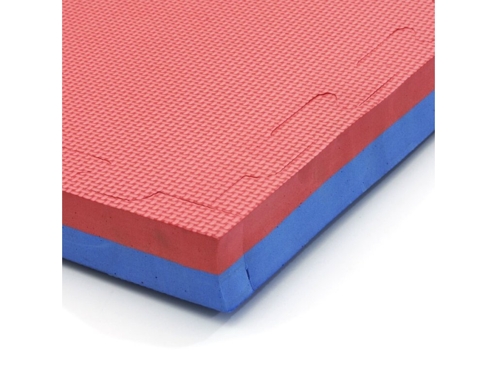 Červeno-modrá modulární pěnová podložka Tatami je oboustranná podložka tvaru puzzle, přičemž jednotlivé díly do sebe přesně zapadají. Výhodou Tatami podložky je protiskluzová pěna a měkký dotek. Lze ji využít pro všechny druhy sportů, kde se cvičí naboso.