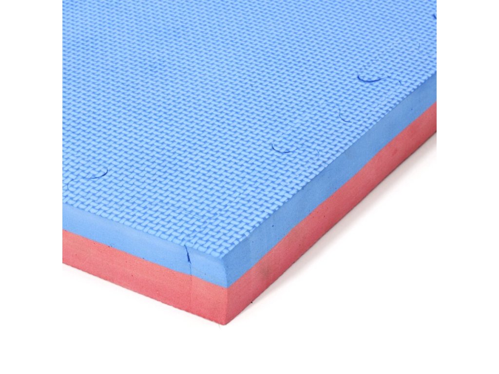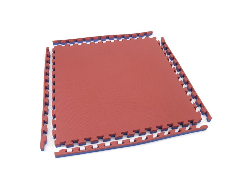 Červeno-modrá modulární pěnová podložka Tatami je oboustranná podložka tvaru puzzle, přičemž jednotlivé díly do sebe přesně zapadají. Výhodou Tatami podložky je protiskluzová pěna a měkký dotek. Lze ji využít pro všechny druhy sportů, kde se cvičí naboso.