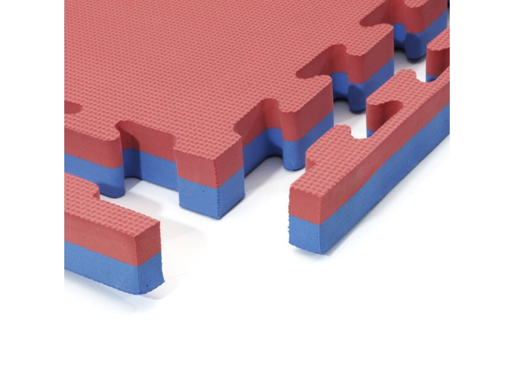 Červeno-modrá modulární pěnová podložka Tatami je oboustranná podložka tvaru puzzle, přičemž jednotlivé díly do sebe přesně zapadají. Výhodou Tatami podložky je protiskluzová pěna a měkký dotek. Lze ji využít pro všechny druhy sportů, kde se cvičí naboso.