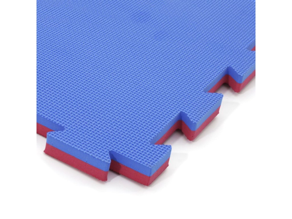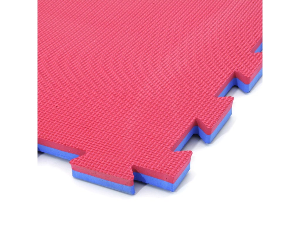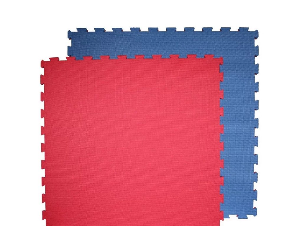 Červeno-modrá modulární pěnová podložka Tatami je oboustranná podložka tvaru puzzle, přičemž jednotlivé díly do sebe přesně zapadají. Výhodou Tatami podložky je protiskluzová pěna a měkký dotek. Lze ji využít pro všechny druhy sportů, kde se cvičí naboso.