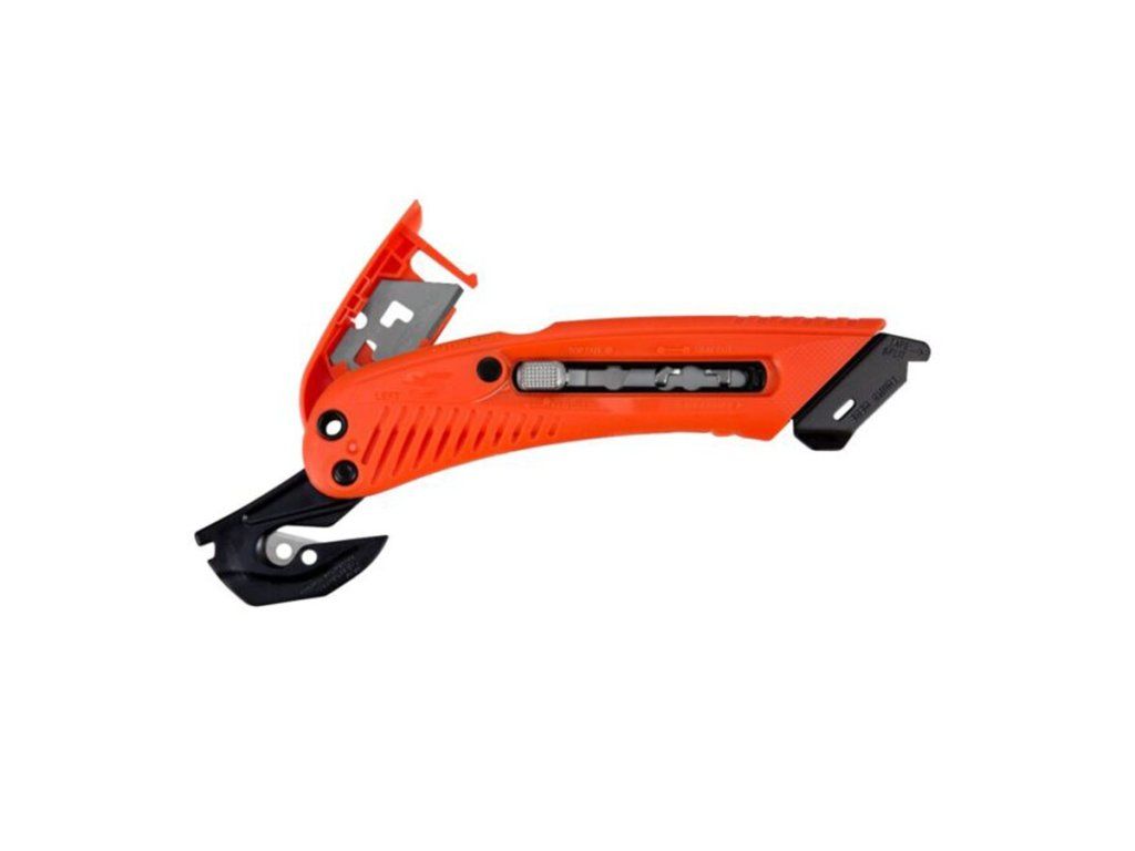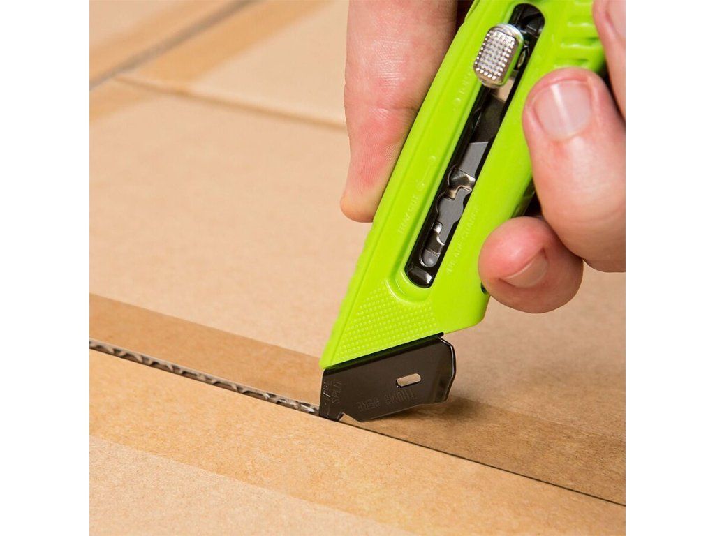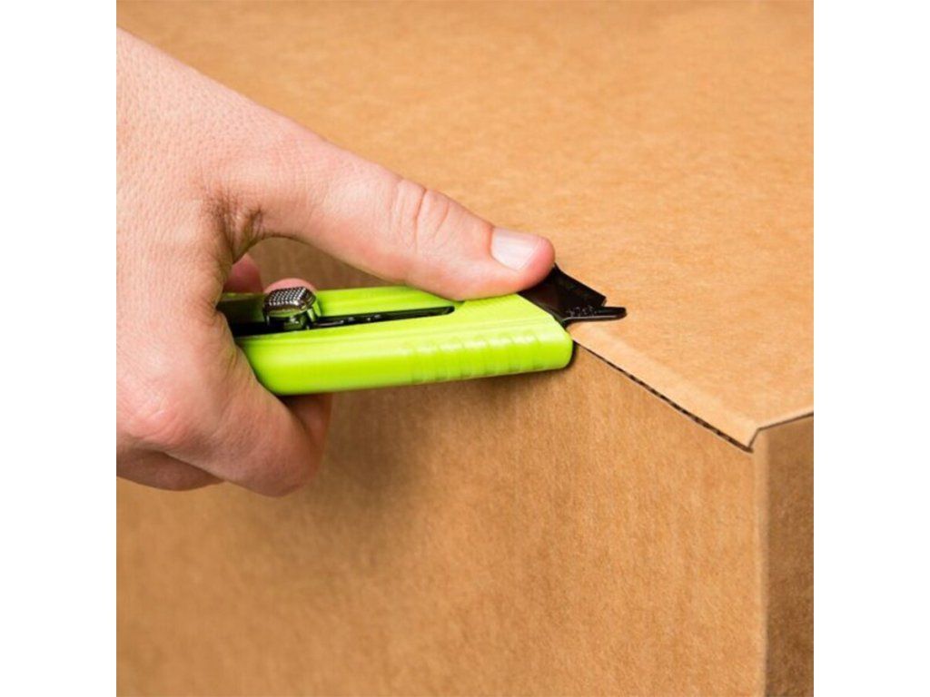 Bezpečnostní nůž 3 v 1 plní funkci při řezání krabic + dělení pásky + integrovaný rozřezávač fólie pro bezpečné řezání smršťovací fólie, plastových pásků, motouzů a dalších. Tento inovativní řezací nástroj snižuje nákladná poranění čepelí a dělá řezání krabic bezpečným, snadným a pohodlným. Pevný ocelový kryt se neohne, ani nezlomí a je navržen tak, aby chránil uživatele. Ochranný kryt také slouží jako vodítko pro provedení dokonalého řezu. Jedinečný úhel čepele je nastaven tak, aby nedošlo k poškození obsahu v krabici. Všestranný S5 má navíc tři polohy hloubky čepele pro zvýšení účinnosti; horní řez, mělký řez podnosem a hluboký řez. Použití rozřezávače folie zabraňuje zranění a prodlužuje životnost čepelí.