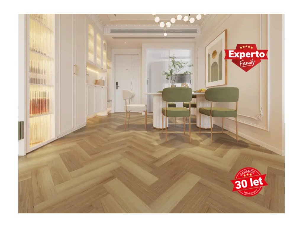 Experto Click SPC 50 plus Herringbone je podlahová krytina se vzorem rybí kosti, která reaguje na rostoucí poptávku po dekorech připomínajících dřevěné parkety a splňuje vysoké nároky zákazníků. Spojuje odolnost s estetickým vzhledem, což ji činí ideální volbou pro různé projekty.