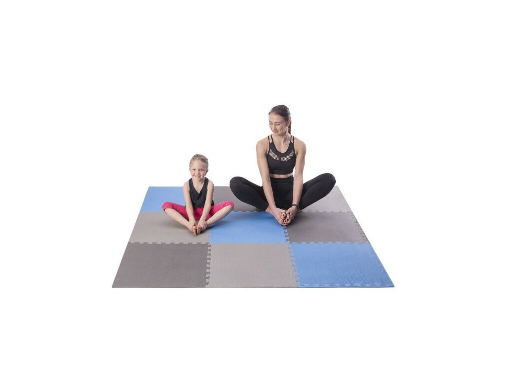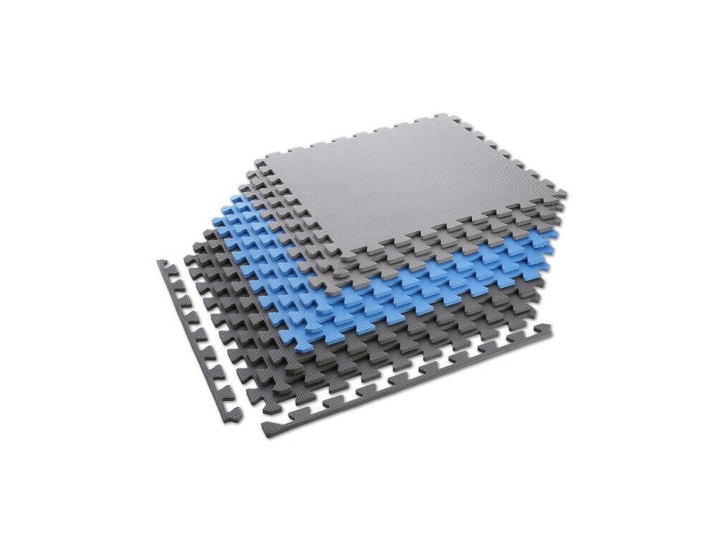 Modro-šedá pěnová puzzle podložka (9 ks) ONE FITNESS - 180 x 180 x 1 cm