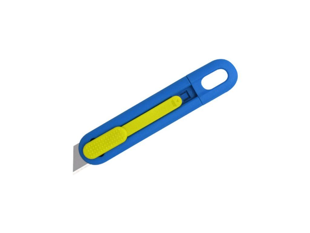 Modro-žlutý plastový bezpečnostní samozatahovací jednorázový nůž