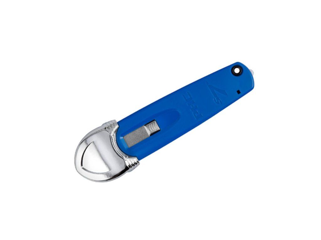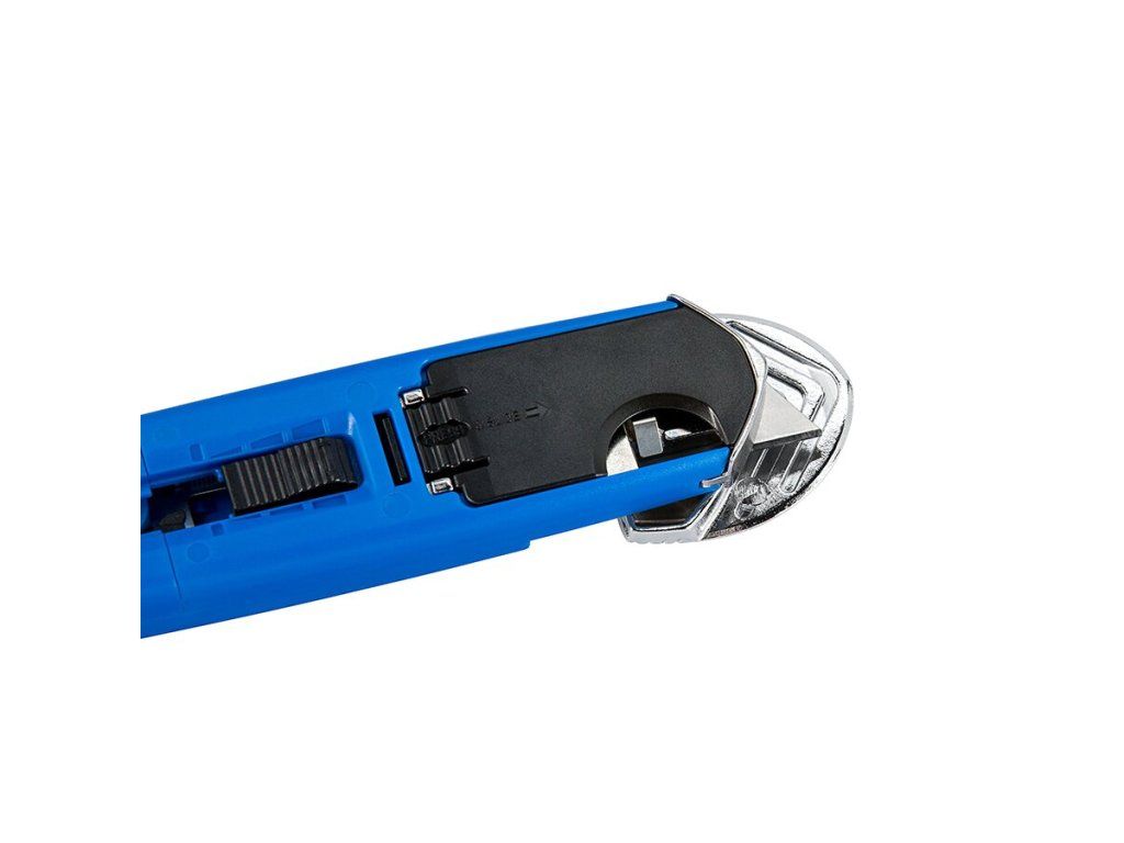 Bezpečnostní nůž kombinuje užitečnost průmyslového nože s bezpečnostními výhodami samo-zatahovaní bezpečnostního nože. Pro maximalizaci produktivity tento nástroj 3 v 1 obsahuje řezačku fólie se snadným uvolňováním, rozdělovač pásek pro velké zatížení a všestrannou řezačku bezpečnostních schránek. Aby se předešlo bolestivým a nákladným zraněním, je oboustranně vybaven inovativním robustním kovovým chráničem, který se pohybuje v tandemu s čepelí a současně zasouvá záštitu i čepel.