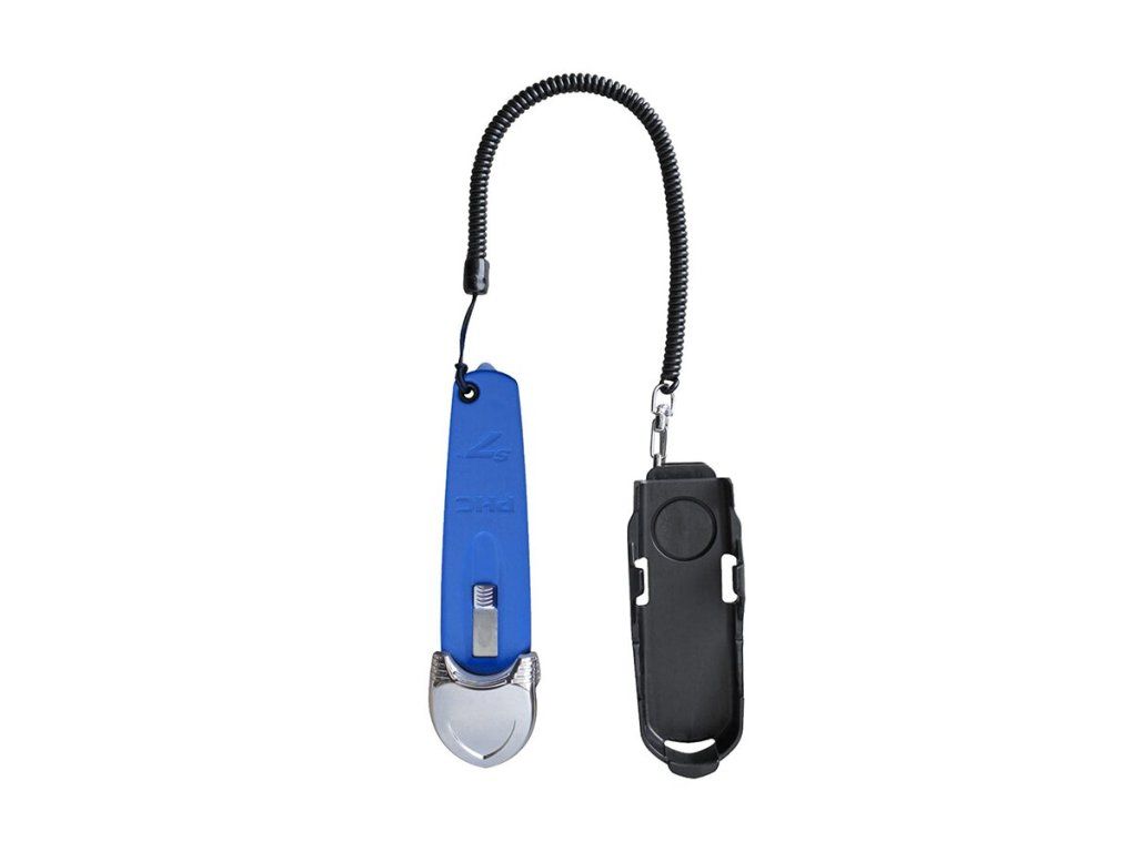 Modrý kovový bezpečnostní samozatahovací nůž 3 v 1, S7