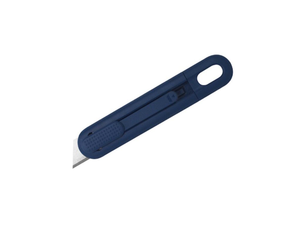 Modrý kovový bezpečnostní samozatahovací nůž