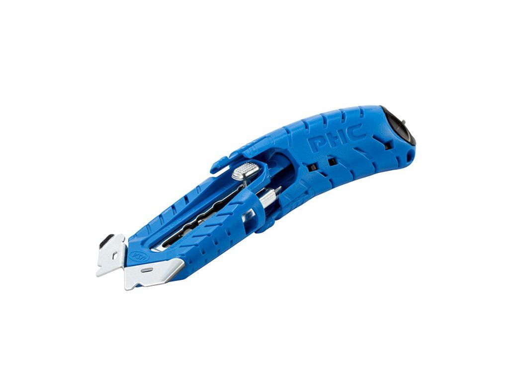 Oboustranný bezpečnostní nůž je přelomový bezpečnostní nůž eliminuje potřebu mít pro vaše zaměstnance po ruce dva samostatné nože. Jedinečnou ergonomickou rukojeť lze snadno nastavit pro levou i pravou ruku – stačí otočit rukojetí a otočit čepel! Snižuje nákladná poranění čepelí a dělá řezání krabic bezpečným, snadným a pohodlným pro leváky i praváky. Dvojitý pevný ocelový kryt se neohne a ani nezlomí. Ochranný kryt také slouží jako vodítko pro provedení dokonalého řezu.