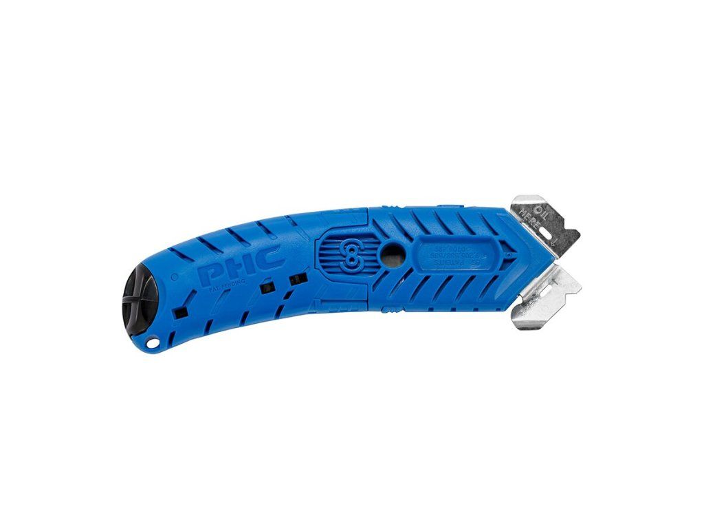 Modrý kovový bezpečnostní samozatahovací oboustranný nůž S8