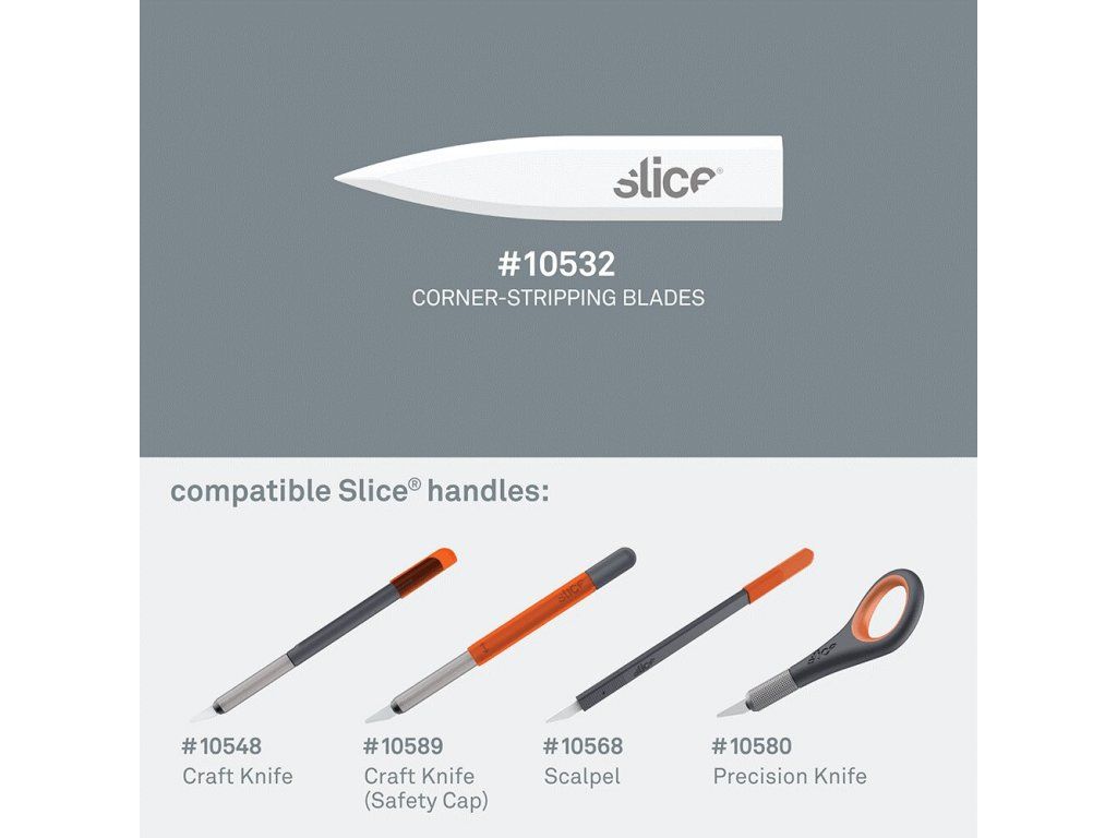 - bezpečnostní čepele Slice jsou chemicky netečné, nemagnetické, nevodivé, nejiskřivé, nerezavějící