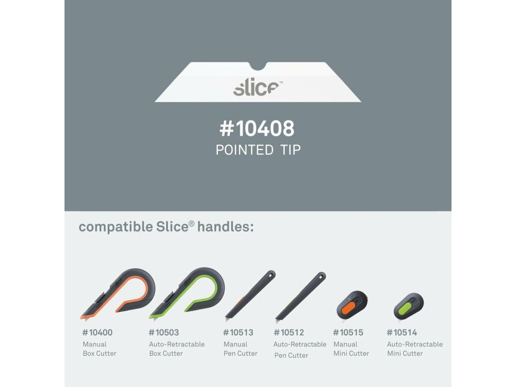 Tyto čepele jsou kompatibilní s noži Slice 10400, 10503, 10514, 10515, 10512, 10513.