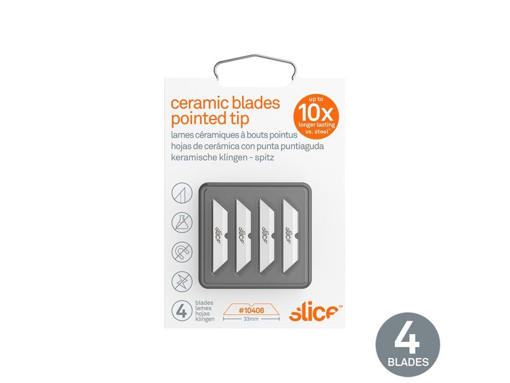 - bezpečnostní čepele Slice jsou chemicky netečné, nemagnetické, nevodivé, nejiskřivé, nerezavějící