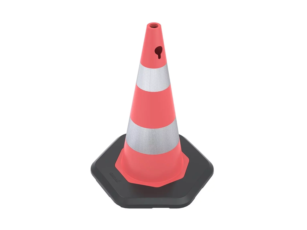 Kužel 75 cm je navržen pro maximální funkčnost v profesionálním provozu. I přes svou vyšší hmotnost zůstává snadno manipulovatelný a jeho kónický tvar dovoluje efektivní stohování, což šetří místo při transportu na korbách servisních vozů. Horní část kuželu je uzpůsobena pro osazení doplňkovými reflexními prvky nebo výstražnými LED světly, čímž lze radikálně zvýšit bezpečnost v noci či za mlhy. Tento model je ideálním řešením tam, kde lehčí kužely selhávají kvůli stabilitě.