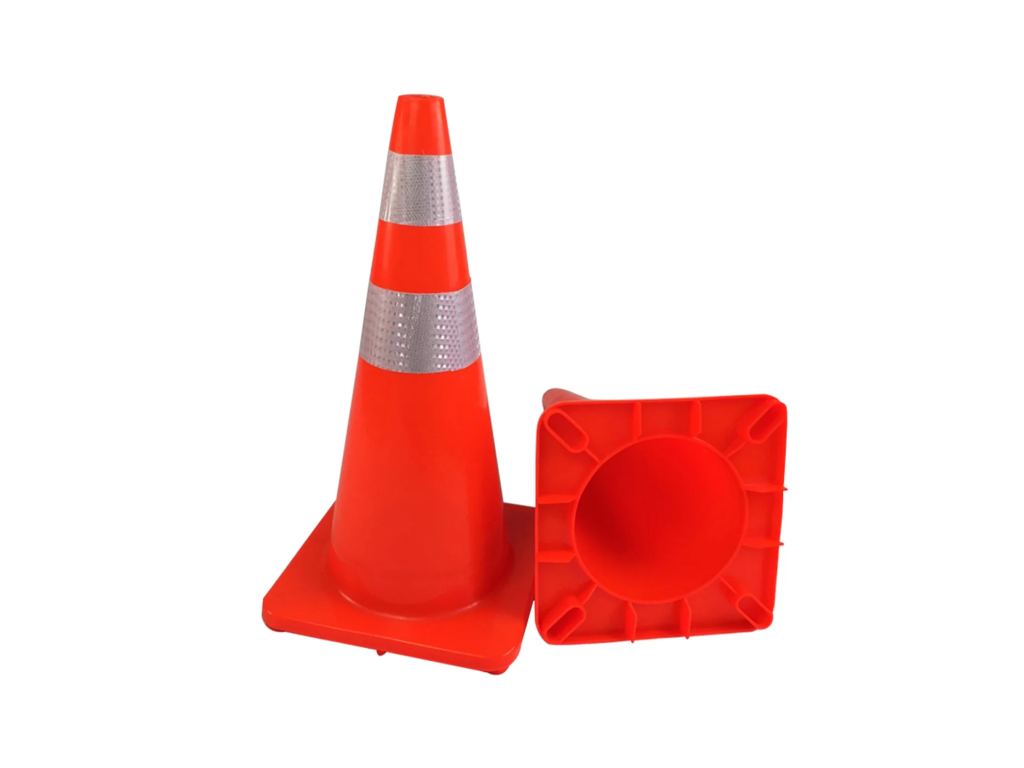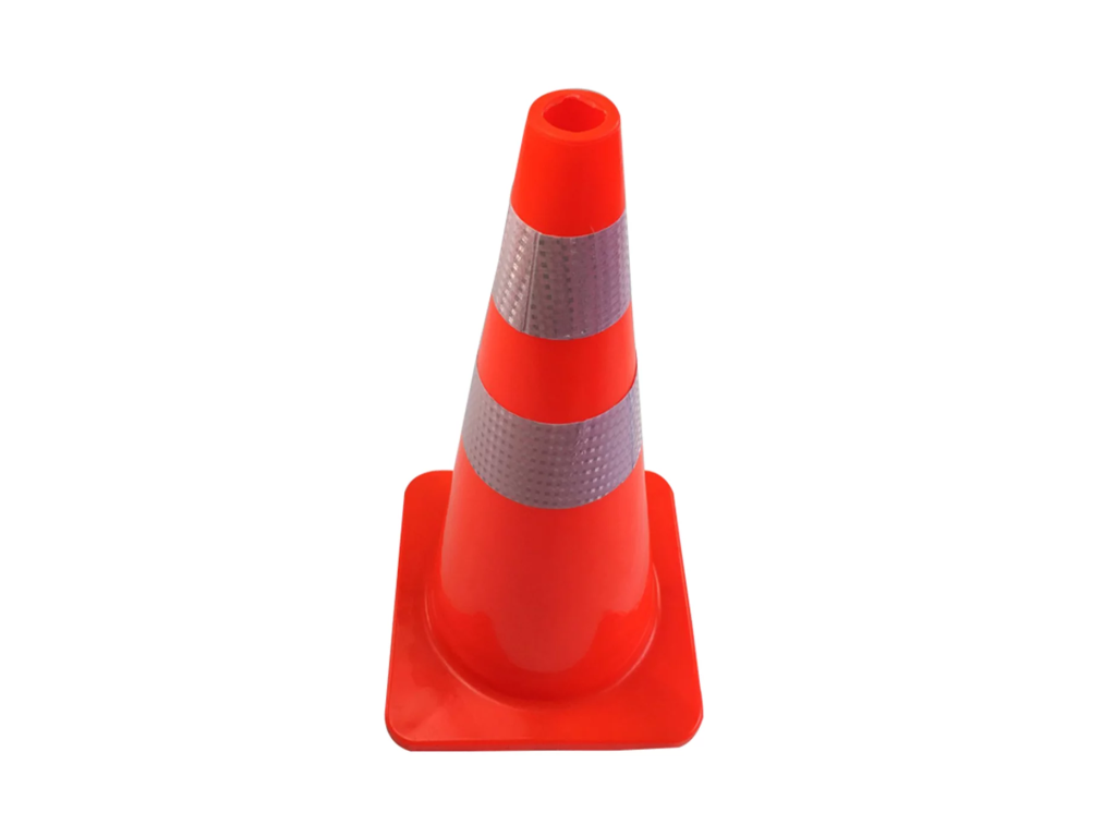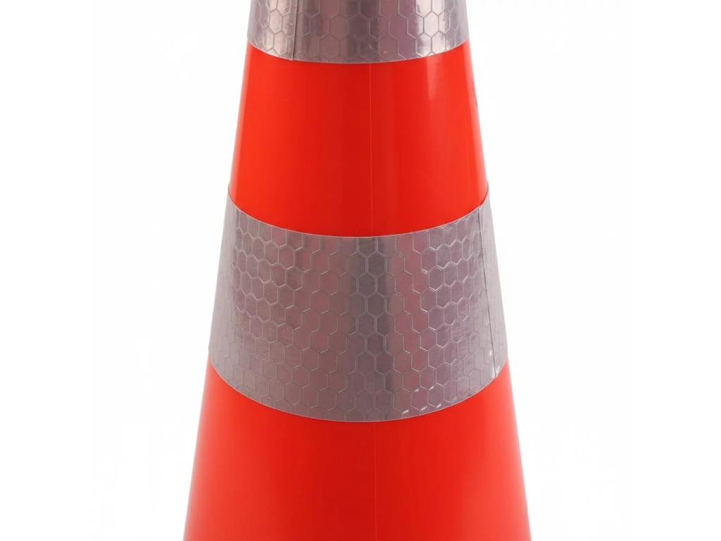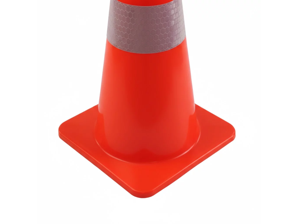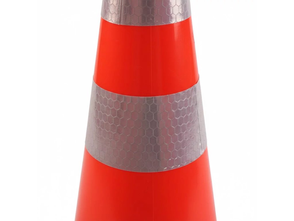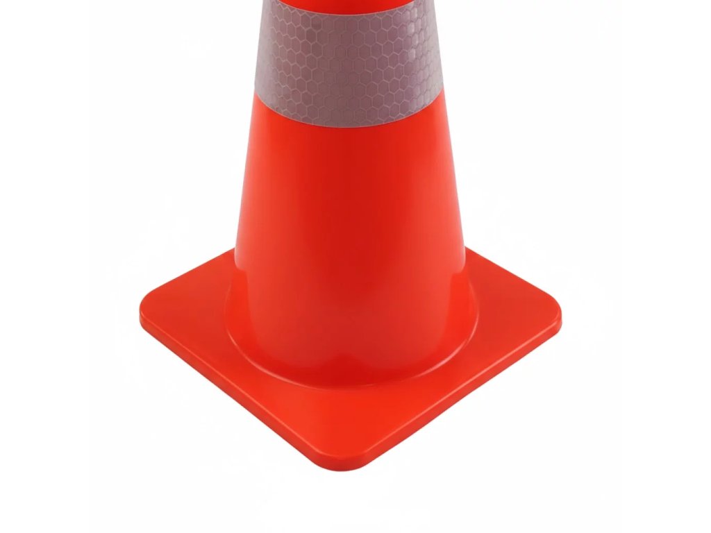 Špičkovou viditelnost i na velkou vzdálenost zajišťuje výrazná oranžová barva v kombinaci se dvěma extra širokými reflexními pruhy o šířce 10 cm. Tyto pruhy splňují vysoké nároky na odrazivost světla, což zajišťuje bezpečnou orientaci řidičů za tmy, hustého deště nebo mlhy. Stabilní čtvercová základna o rozměru 36 × 36 cm poskytuje kuželu vynikající stabilitu a zabraňuje jeho převržení či posunu při průjezdu těžké techniky v těsné blízkosti.