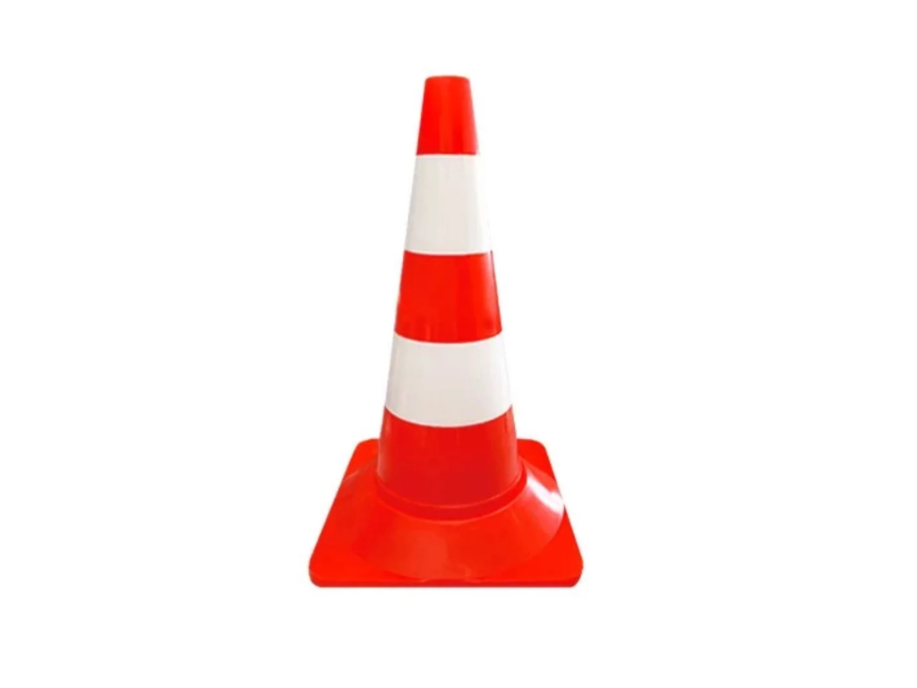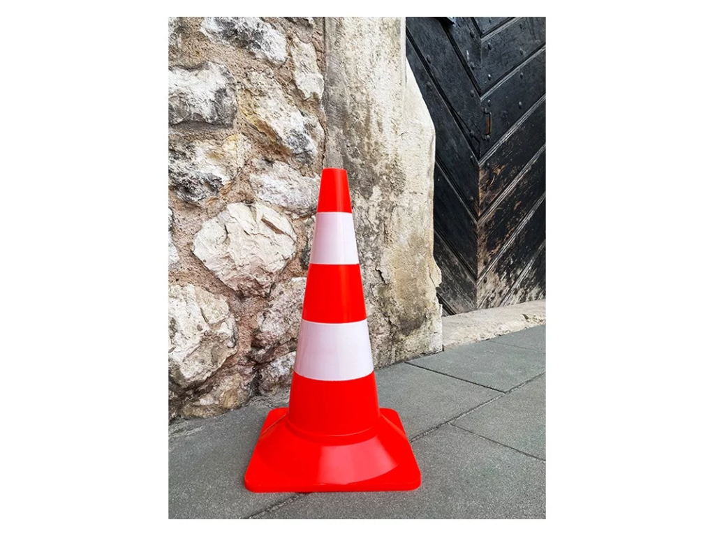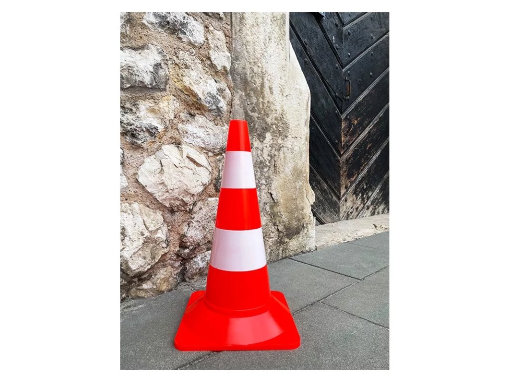 Oranžový plastový dopravní kužel oplotí plochy vyloučené z užívání, označí místa silničních prací a oprav. Kužele mají masivní základnu z gumy a dva reflexní pruhy. Chrání čerstvě natřené čáry, informují o zúžení vozovky. Fungují také jako tréninkové kužely.