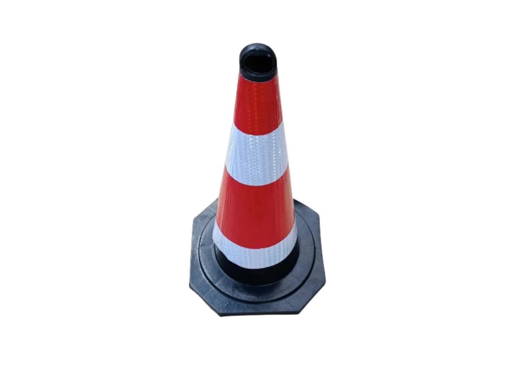 Dopravní reflexní kužel je vyroben z vysoce kvalitní elastické pryže, která zajišťuje jeho dlouhou životnost a výjimečnou odolnost vůči povětrnostním vlivům. Díky pružnému materiálu se kužel při přejetí vozidlem vychýlí a následně se vrátí do původního tvaru, což minimalizuje riziko jeho poškození.