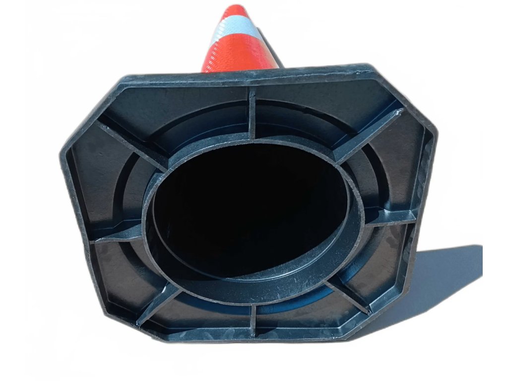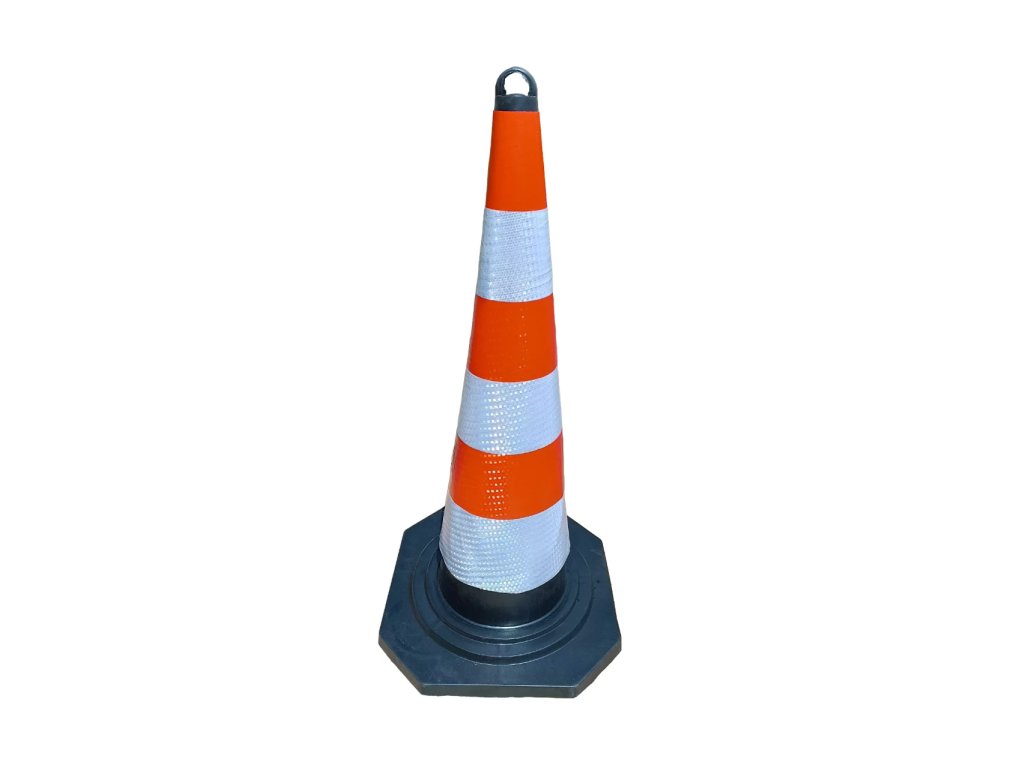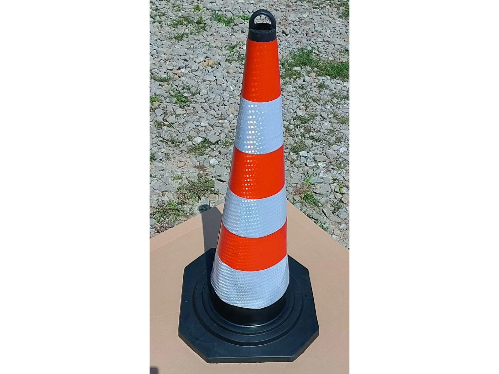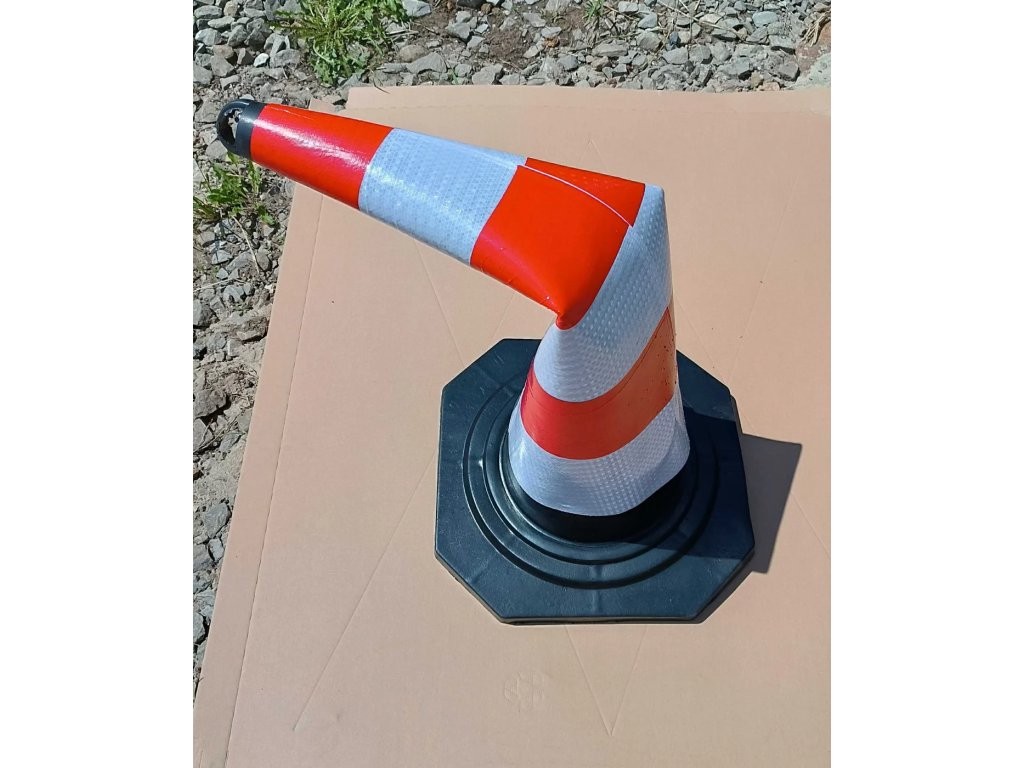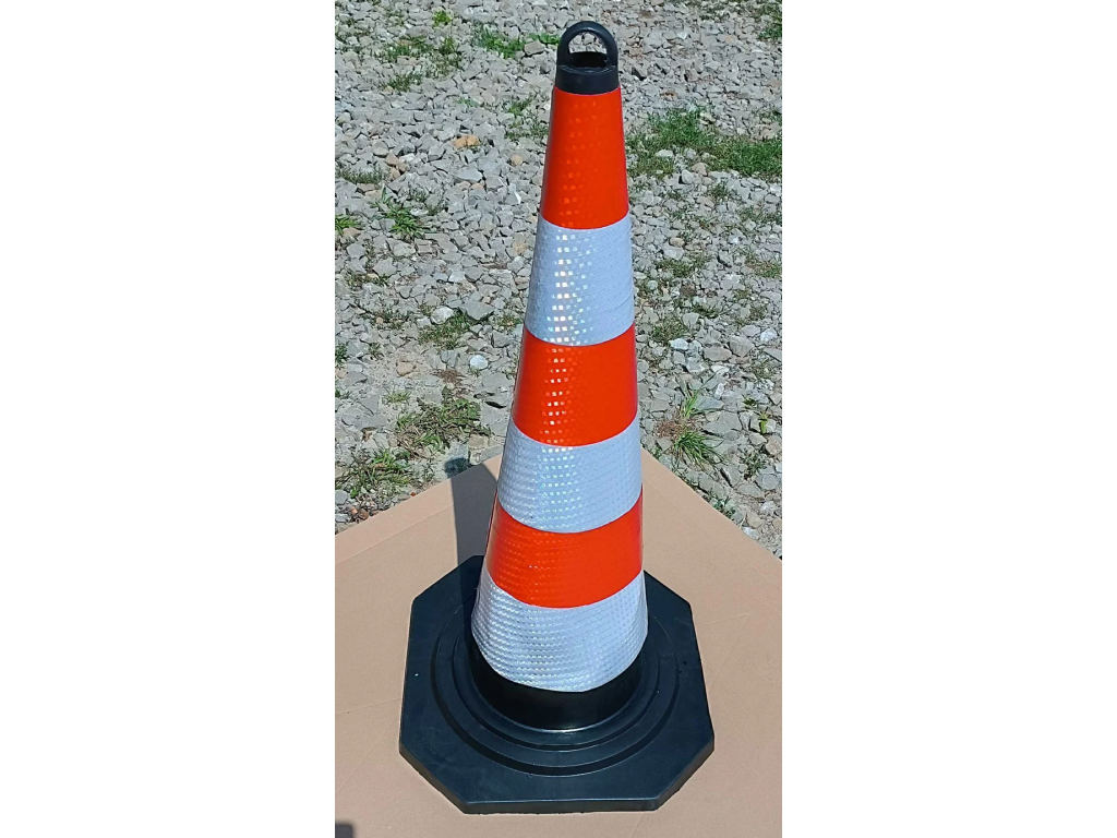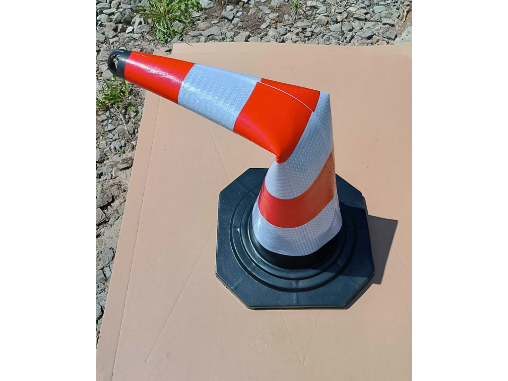 Dopravní reflexní kužel je vyroben z vysoce kvalitní elastické pryže, která zajišťuje jeho dlouhou životnost a výjimečnou odolnost vůči povětrnostním vlivům. Díky pružnému materiálu se kužel při přejetí vozidlem vychýlí a následně se vrátí do původního tvaru, což minimalizuje riziko jeho poškození.