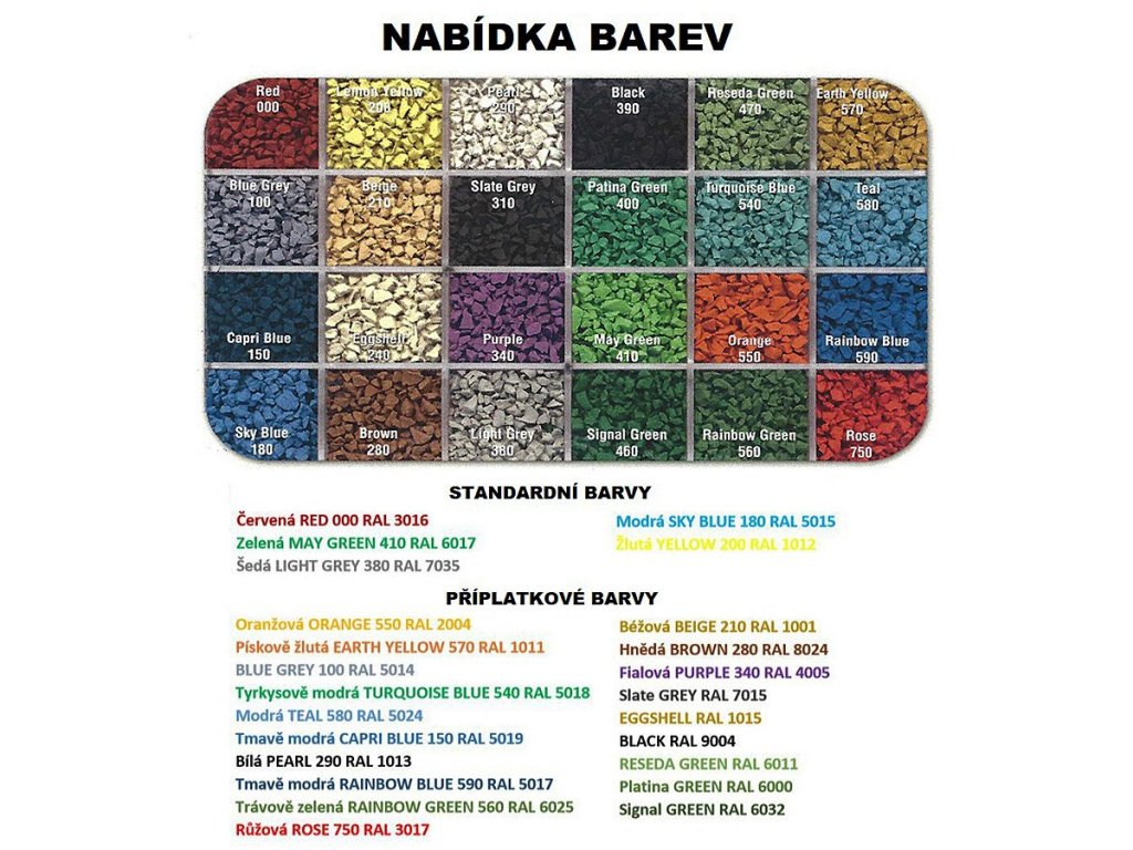 Výběr barvy EPDM granulátu - barvy STANDARD
