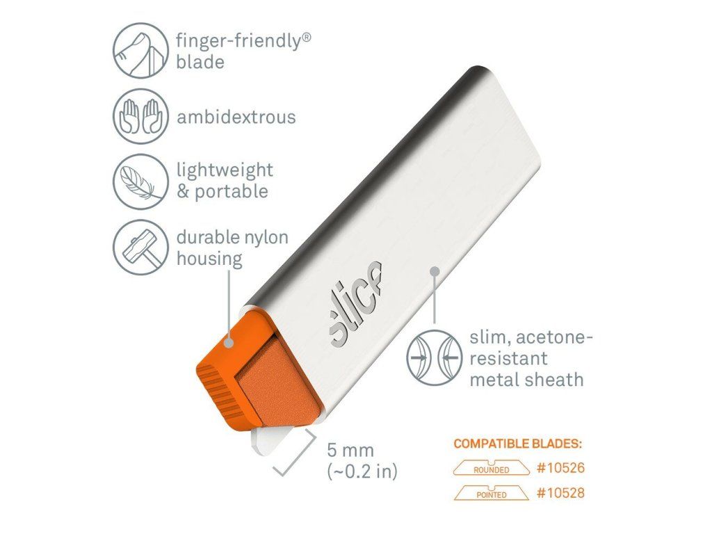 - bezpečnostní čepele Slice jsou chemicky netečné, nemagnetické, nevodivé, nejiskřivé, nerezavějící
