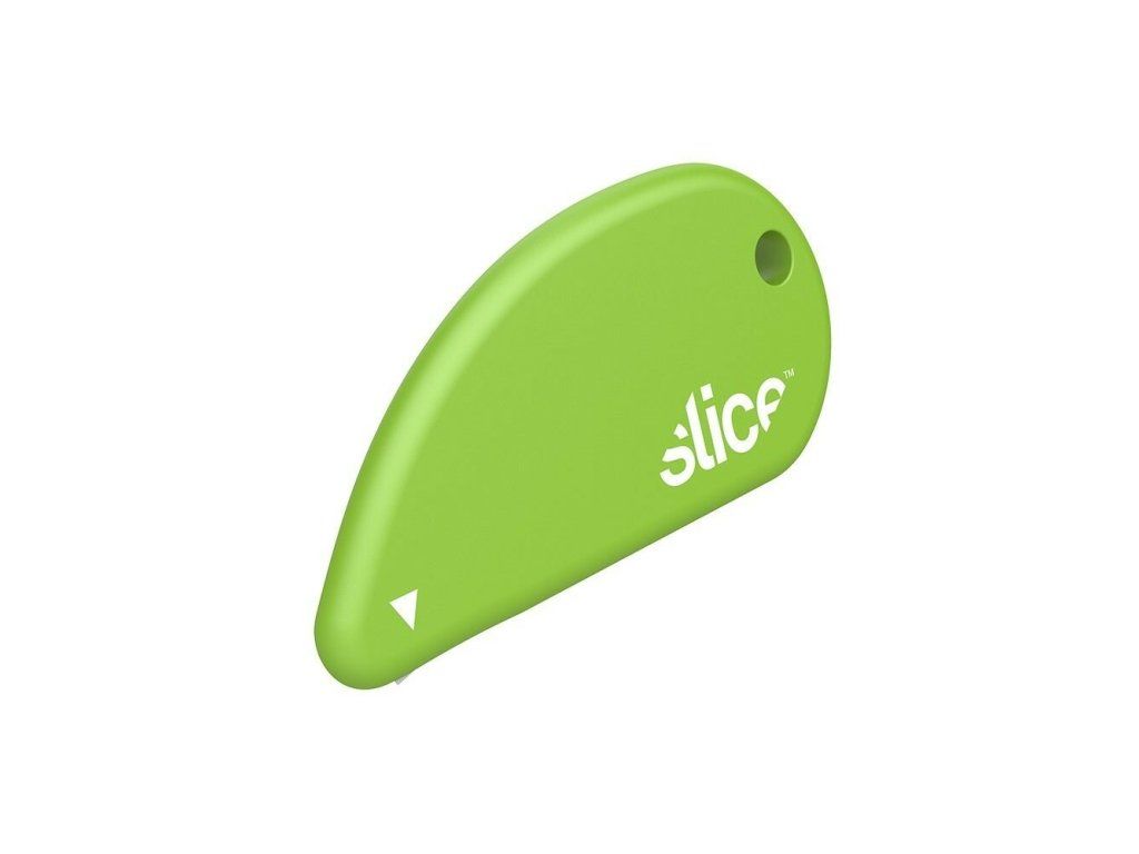 Zelený plastový malý bezpečnostní univerzální nůž SLICE - délka 6,1 cm, šířka 3,1 cm, výška 0,6 cm
